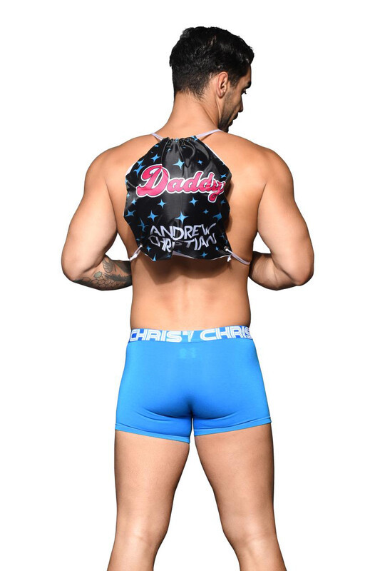 Чоловічий міський рюкзак Daddy від американського бренду Andrew Christian у зірки та текстовий принт. Виготовлений з синтетичних тканин. Матеріал: 100% поліестер. Розмір: 39х33 см. Має одне основне відділення.